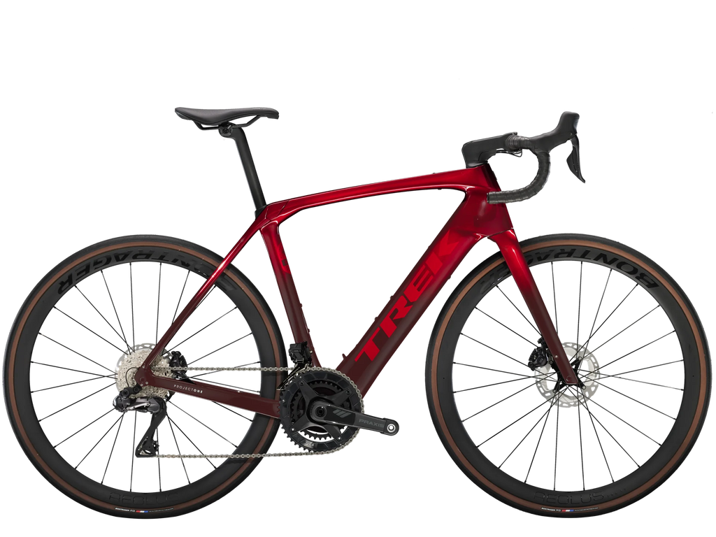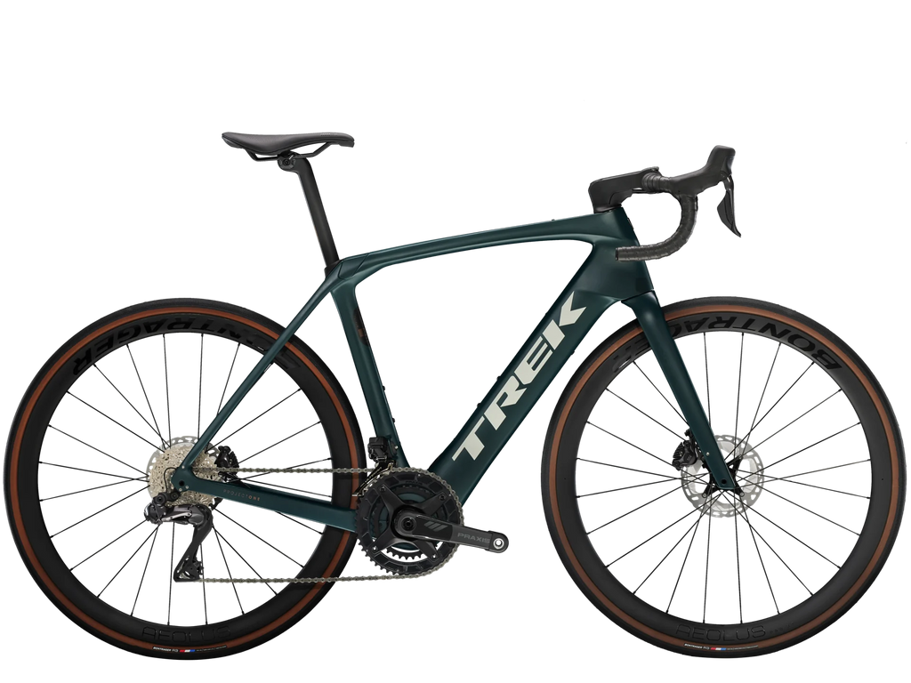 Domane+ SLR 7 is a category-redefining carbon e-road bike built with intensely light 800 Series OCLV Carbon. It hides a compact and refined motor to elevate your ride with natural-feeling assist that quietly blends in with the elements, all but disappearing under you, so you stay more connected to the experience while enjoying extra power for crushing climbs and long, epic adventures. Plus, it offers the ultra-fast shifting of a Shimano Ultegra Di2 drivetrain.