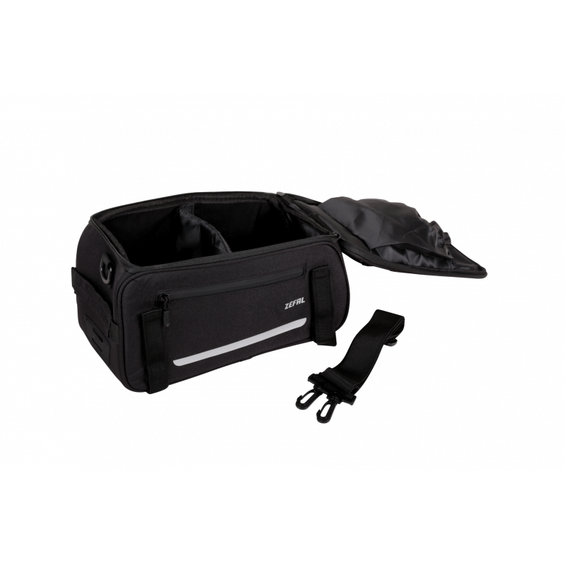 The Z Traveler 40 is compatible with all types of bag racks thanks to its Velcro® straps. It has a 9L capacity and a loop for a light, reflective strips, a shoulder strap and raincover.