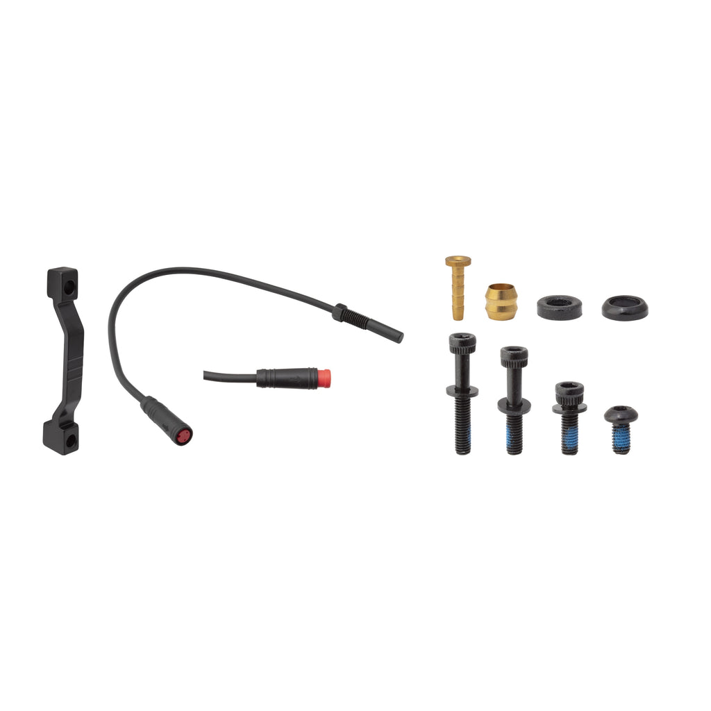 - Dual piston hydraulic brakes with integrated electic motor cut off sensor for use with E-Bikes