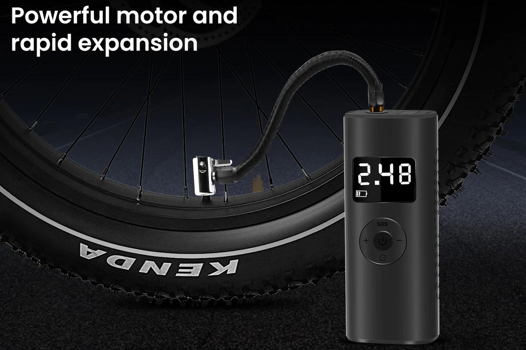 Long-lasting Power Tire Inflator: This tire inflator is powered by a built-in 7800mA rechargeable battery, so there is no need to connect to an external power source during use. The inflation speed is three times faster than other ordinary cordless inflators on the market, with a 35% increase in power. It only takes 25 seconds to charge an electric bicycle