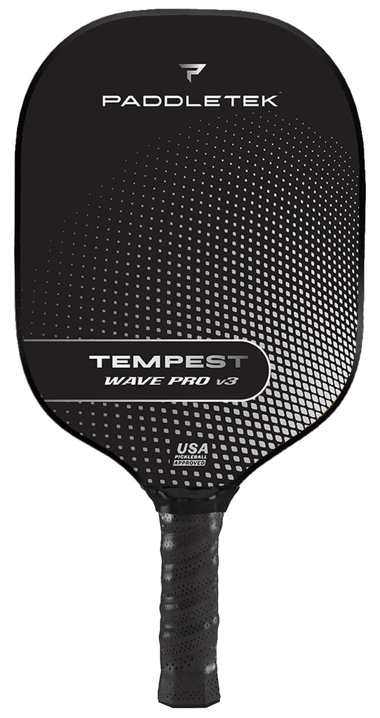 Our best-selling paddle series is now even more formidable. Introducing the new and improved Tempest Wave Pro v3 with Paddletek's exclusive ICED Carbon Fiber. Perma-Spin technology lets serious players have spin capabilities that last longer than other carbon fiber surfaces. The legendary Smart Response Technology and a large, consistent sweet spot add finesse to every shot, while the balanced weight increases speed and maneuverability for even better play
