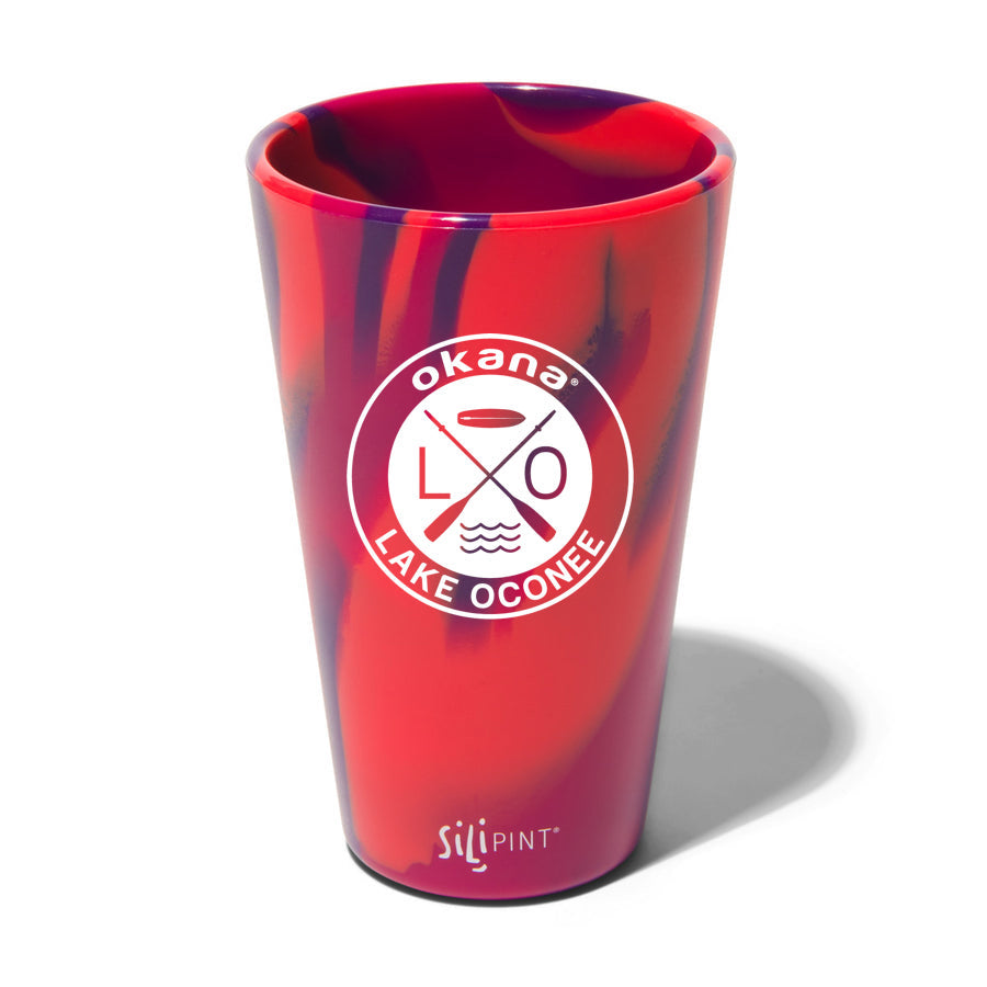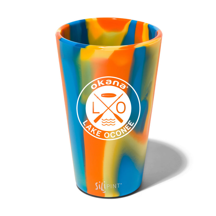 Okana Outdoors Silipint 16oz pint glass. Enjoy your favorite beverage in a silicone 16oz cup from Okana Outdoors. Take a piece of Lake Oconee home with you and remember your trip by drinking out of your Okana Lake Oconee Silipint Pint Cup.